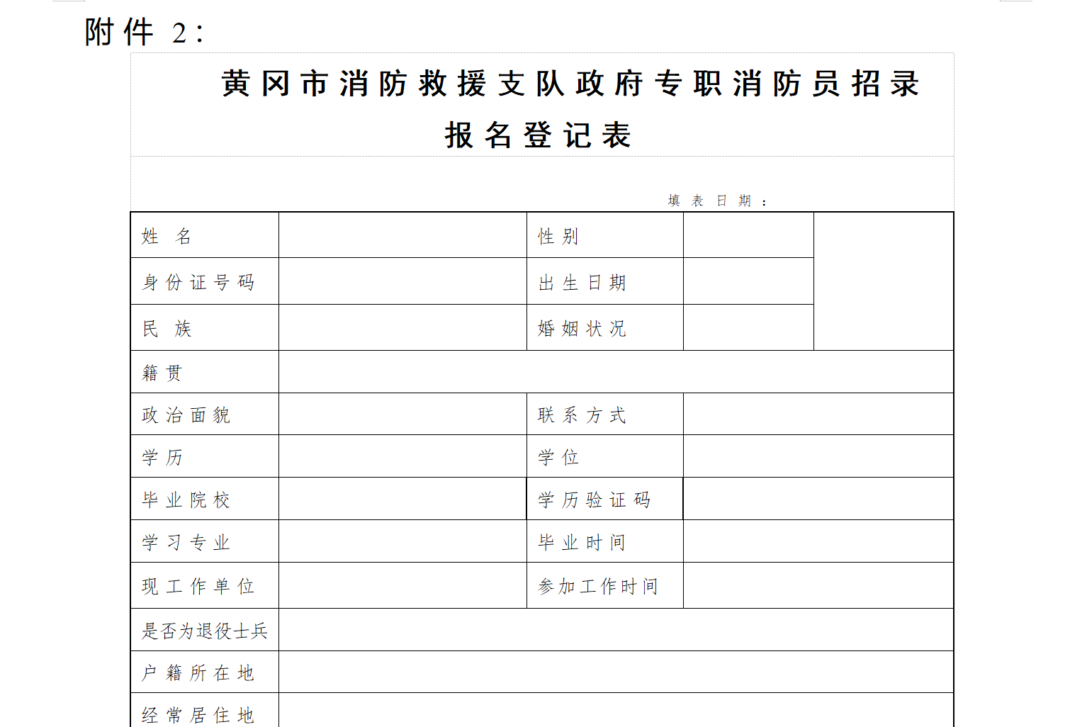 附件2 黄冈市消防救援支队政府专职消防员招录报名登记表