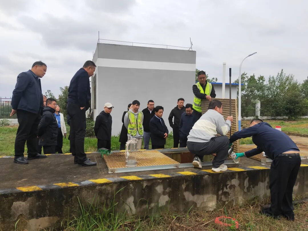 督查组一行先后赴八里湾镇污水提升泵站、八里湾镇污水处理厂、太平河道清淤项目、上徐家河将军后花园溢流口及园艺河入倒水河口等点位开展实地督查,并在各点位进行水质采样监测。在污水提升泵站查看设备运行、询问抽排量与应急预案,叮嘱落实24小时值班杜绝污水直排;在污水处理厂沿工艺流程查看关键环节,了解进水量、出水水质数据及在线监测情况;在太平河道清淤现场核实清淤范围深度,了解淤泥处置方案及清淤后成效;在上徐家河溢流口观察排水,指出整治短板并要求制定整改方案完善雨污分流;在园艺河入倒水河口徒步巡查河面状况,询问治理与管护情况,要求加强跨区域协同治理、建立长效监管机制。