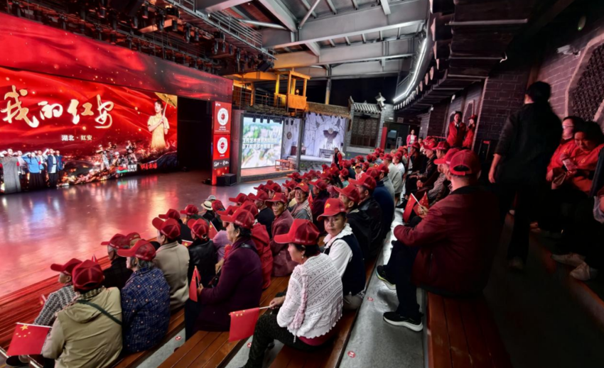 在程河会议室,经典朗诵活动与电影《搭错车》观影环节相继开展,文学的诗意与光影的温情为参与者带来精神滋养。午后,大家走进红安县科技馆探索科技奥秘,又在红秀剧场观看沉浸式红色实景演艺《我和我的红安》,直观感受家乡发展新貌。
