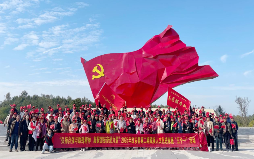 活动当天,参与者们在志愿者的陪同下,齐聚红色热土——王近山将军故居前,共同见证活动启动。红安县残联党组成员、副理事长高芳指出,活动旨在帮助残疾人“走出家门、融入社会,心里有光、身上有劲儿”,通过“五个一”形式增强残疾人的文化获得感与社会融入感。