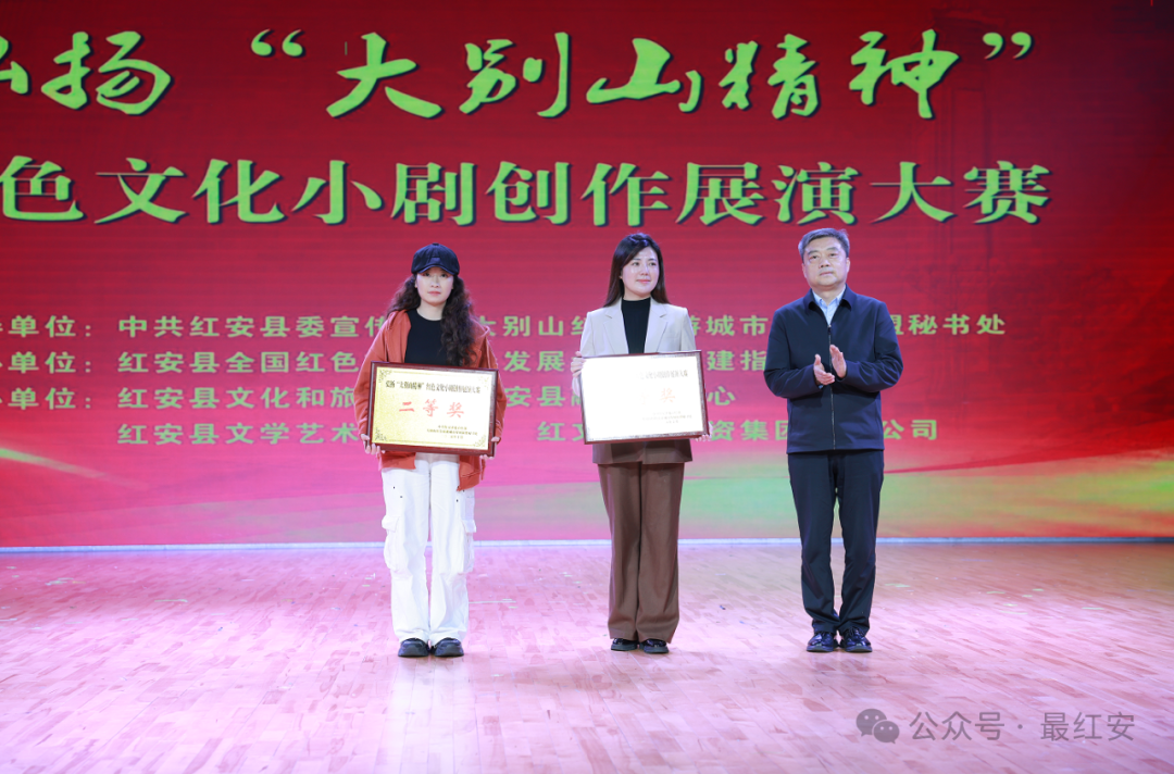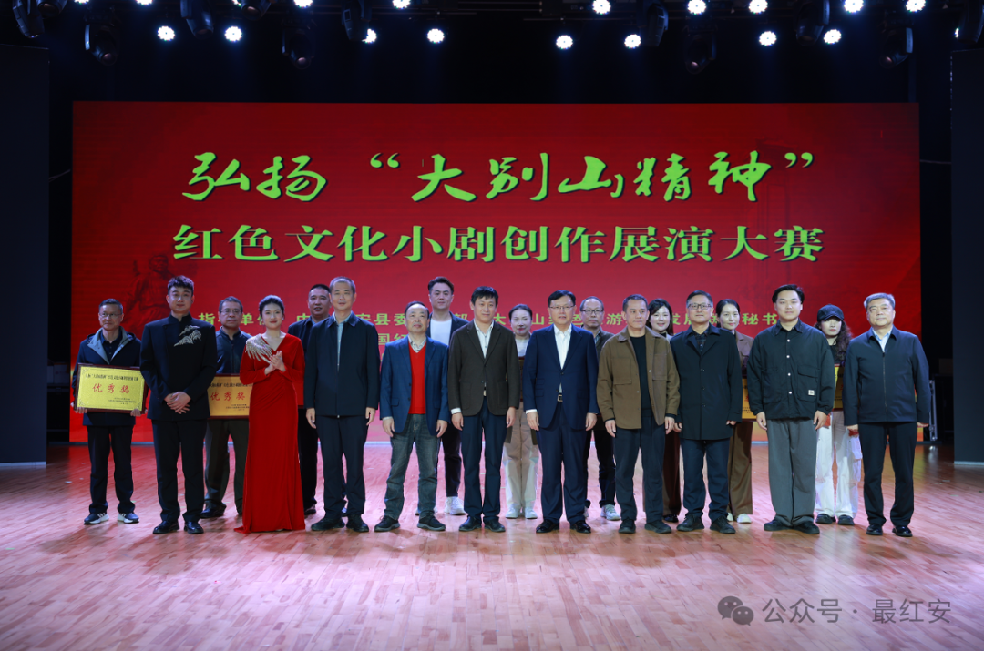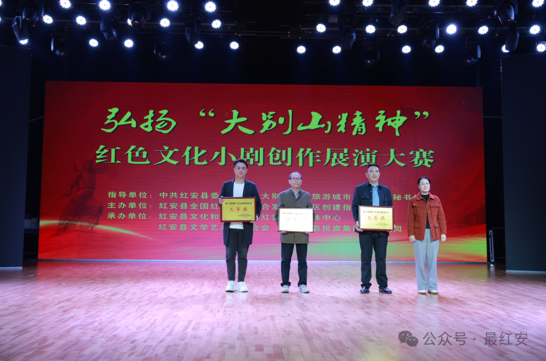 经过两个小时的激烈角逐,最终红色文化小剧《春满大别山》荣获一等奖,《微光》《大别山上七枝花》荣获二等奖,《当归无期》《大别山的脊梁——兰桂珍》《英雄凯歌颂清风》荣获三等奖。胡广等县领导分别为获奖剧目颁奖。