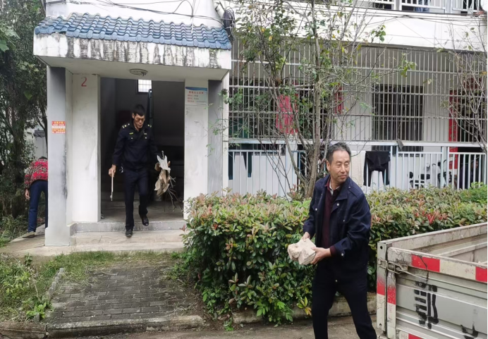 行动当日,由镇城建办、执法队、中航环卫人员组成的联合整治队伍,在整治工作专班的统一指挥下,深入方院安置点。针对居民反映强烈的公共空间被占用、房前屋后杂物乱堆乱放等突出问题,队员们逐户沟通,耐心宣讲政策法规,动员居民主动配合清理。对于无人认领的废弃家具、易燃杂物等,整治队伍动用清运车辆,进行了集中、彻底地清除。