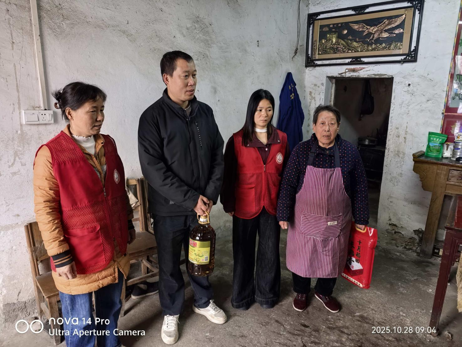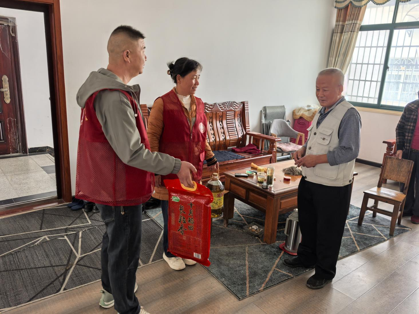 当天,五丰服务中心社工分成3组开展“银龄暖巢”行动,五丰社会服务中心的工作人员与志愿者们带着满满的爱心,走进了社区多位高龄、独居及困难老人的家中。他们不仅送上了精心准备的大米、食用油等生活必需品,更送上了贴心的服务与陪伴。
