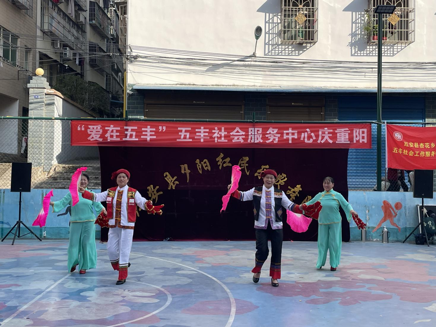 红安网消息 金秋重阳,红安县杏花乡五丰岗社区篮球场化作欢乐海洋。10月28日下午,五丰社会服务中心联合红安县夕阳红民歌舞队举办“爱在五丰”庆重阳主题文艺会演,200余名老年人欢聚一堂,用歌舞、笑声共庆佳节;五丰社会服务中心社工分组入户开展慰问,为高龄、独居老人送去“文化+物资”双重关怀,以“动静结合”的创新模式谱写新时代敬老篇章。