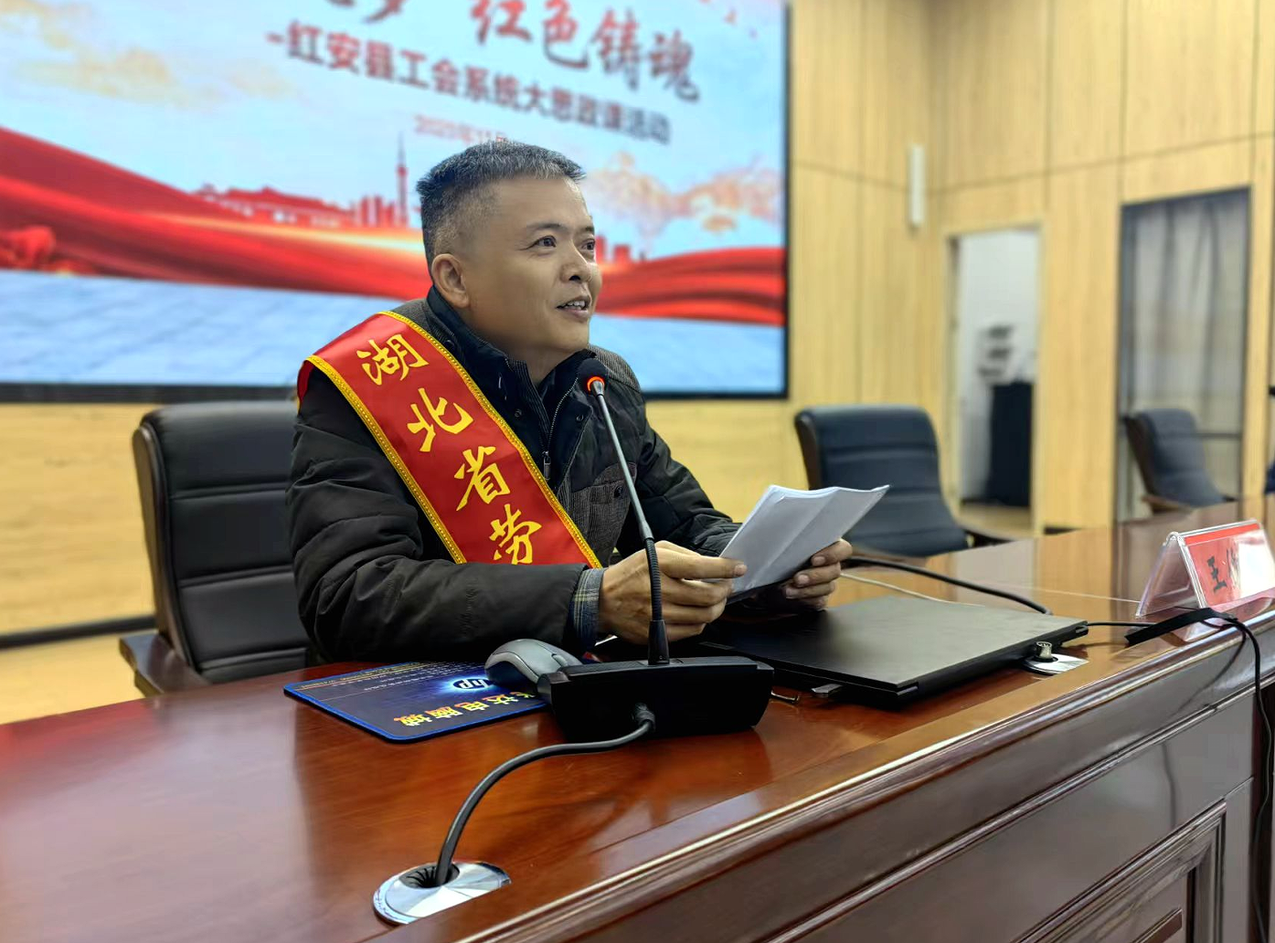 活动以红色基因传承与工匠精神培育深度融合为主线,同步开展党的二十届四中全会精神学习宣讲,邀请湖北省劳模王俊鹏、黄冈市劳模职工宣讲队成员曾祥美分别作主题宣讲,并开展AI工具使用教学。活动聚焦 “三个转化”,把红色感悟转化为忠诚担当、把劳模精神转化为实干行动、把数字赋能转化为能力提升,引导职工立足岗位建功立业,为红安高质量发展注入工会力量。