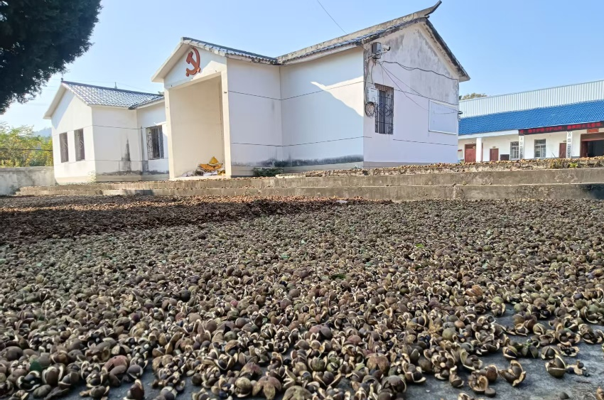 红安网消息 红安县二程镇三里岗村龙王山上,千亩油茶喜获丰收,沉甸甸的油茶果挂满枝头。有的村民们穿梭林间忙着采摘,有的晒场剥壳、晾晒呈现出一派热火朝天的丰收景象。