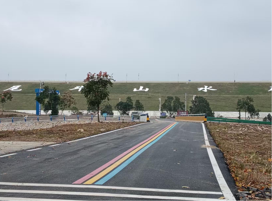 路长近十里,起点处河东垸村头建起小公园,健身器材一溜儿摆开,老人小孩各得其乐,终点是整修一新的“尾斗山水库”(现亦称“尾斗湖”)。进入库区,景色愈加优美:巍峨的大坝坡面上,绿草如茵,坝上几处分布着若干小亭,四角、六角、八角的,琉璃瓦,白身柱,红基座,它们的内部藏着调度灌溉用水、生活饮水的闸门。库内,一袭碧水,澄清见底,烟波浩渺,倒映着蓝天白云和周围的青山绿树,湖心小岛上草色青青,芦苇丛丛,芭茅飞花,白鹭蹁跹,野鸭飞过,百鸟翔集。好一幅美丽的青山绿水图画!