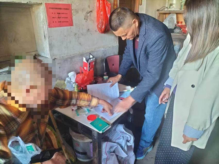 在贫困户杨建国(化名)家中,工作人员仔细查看了居住环境,详细了解其家庭状况与法律诉求。面对行动不便的杨建国,工作人员耐心地讲解法律援助的政策范围、申请流程,逐一核对申请材料,现场为其办理法律援助申请手续,让他足不出户就能享受到专业的法律服务。