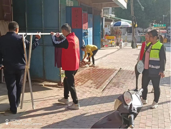 行动紧扣“保障旅游季、展现红安形象”主线,聚焦游客体验与城市运行精准发力。在朝阳街、陵园大道等主干道,志愿者分组开展文明劝导:针对车辆乱停乱放,通过“提醒+引导”协助规范停车,加密违停高发区巡查;针对商户出店经营、占道堆物,逐户宣传“门前四包”,协助清理占道物品,保障人行道畅通;同步捡拾垃圾、规范非机动车停放,推动市容“颜值”“气质”双提升。