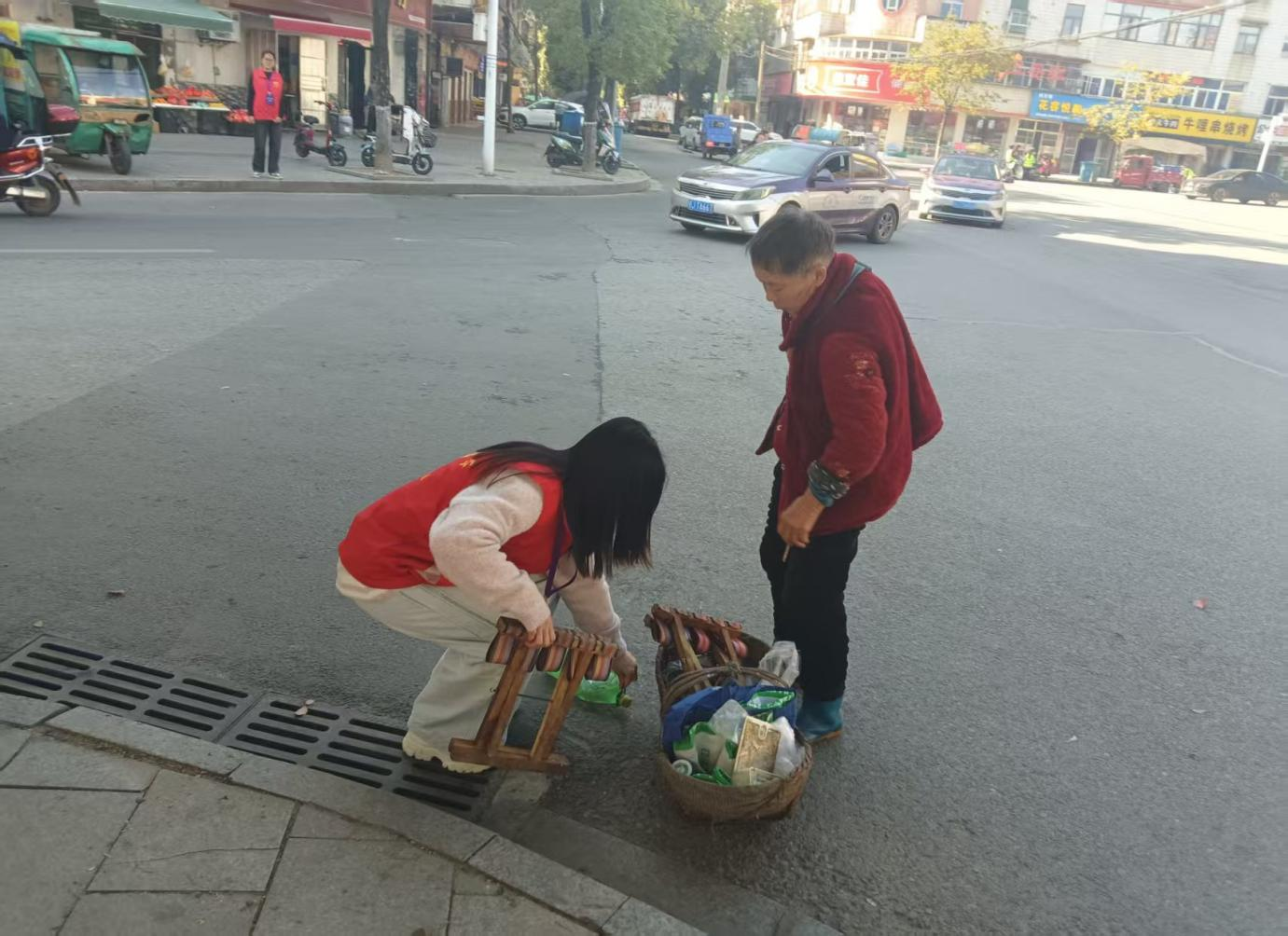 “您别急,我们来帮您!”一位坐着轮椅的老人在家属陪同下,在车流前显得有些为难。志愿者见状,立即上前分工协作。志愿者快步走向老人方向,志愿者则迅速稳住轮椅,与家属一左一右,护送老人安全、平稳地通过马路。整个过程不过一两分钟,却传递着无声的关怀与尊重。