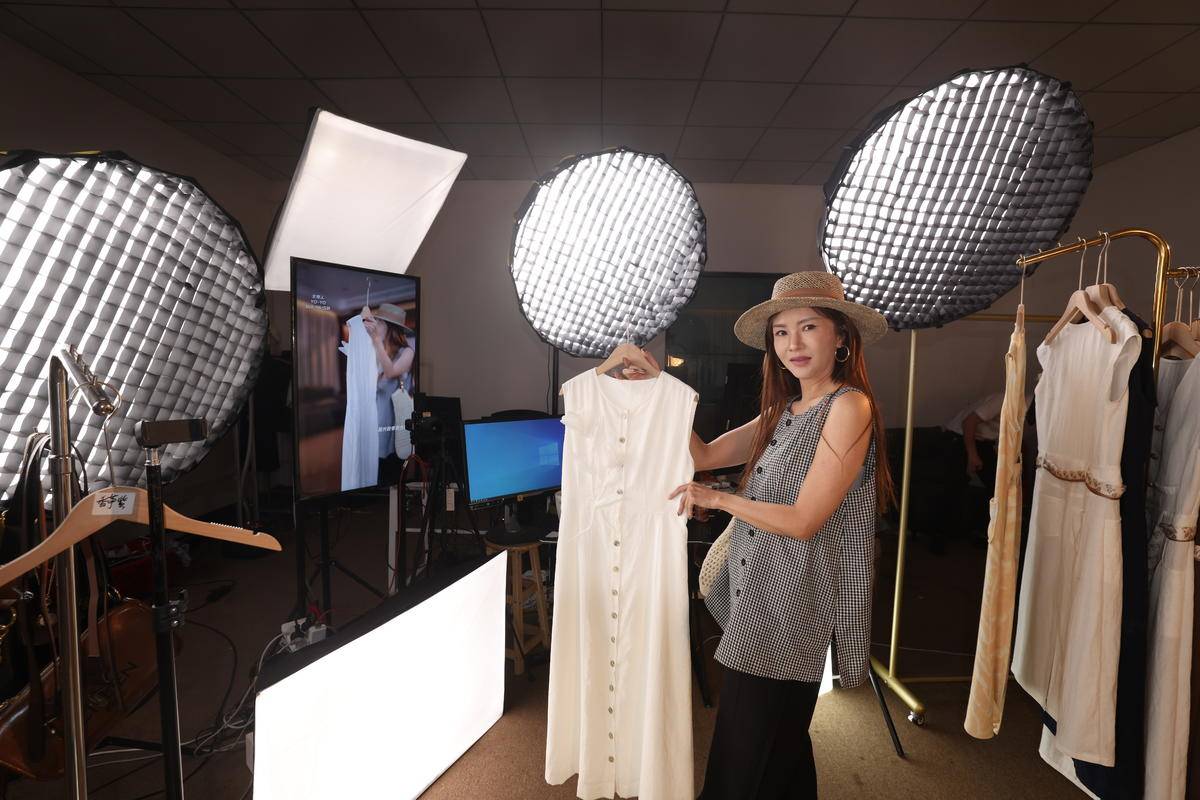 天门服装电商主播进行直播带货。 (湖北日报通讯员 刘银斌 摄)