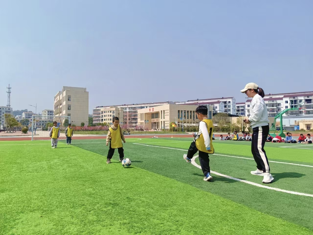 在课程建设上,学校打破传统体育课的单一模式,构建起 “基础 + 特色” 的 “种豆得豆” 课程体系,满足学生多样化发展需求。基础层面开足开齐国家体育课程,确保每位学生每天在校锻炼一小时,低年级推行 “体育游戏” 教学,将跑、跳、投等基本技能融入情境游戏激发兴趣,高年级采用 “模块化” 教学,让学生在篮球、足球、排球等项目中循环体验、发掘特长。特色项目方面,“阳光大课间” 与 “班级足球联赛” 实现一至六年级全面普及,前者融合武术操、广播体操与跑步,每天30分钟的活动让全体师生共享运动乐趣;后者严格落实 “每周一节足球课”,班班有球队、每学期有比赛,校园里处处洋溢着 “人人会踢球” 的浓厚氛围。