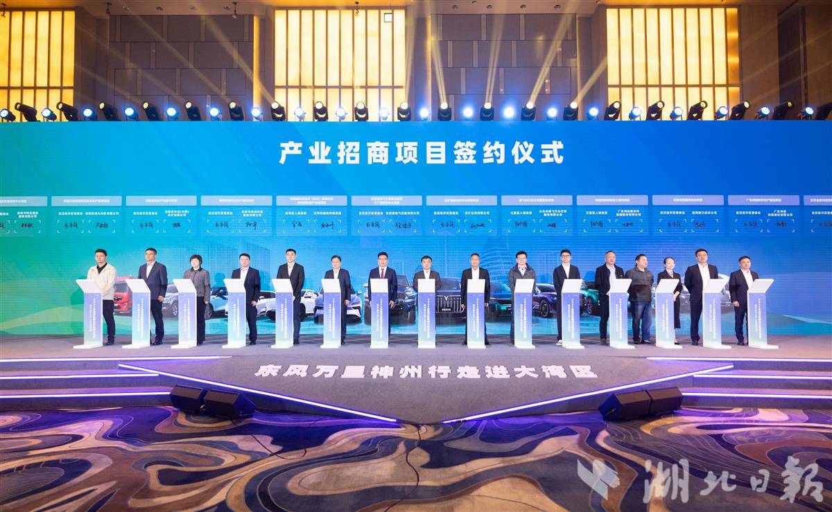 中国车谷品牌运营中心与大湾区相关经销商签订消费券合作协议。武汉经开区、蔡甸区、江夏区与大湾区汽车产业链企业分别签订项目合作协议。