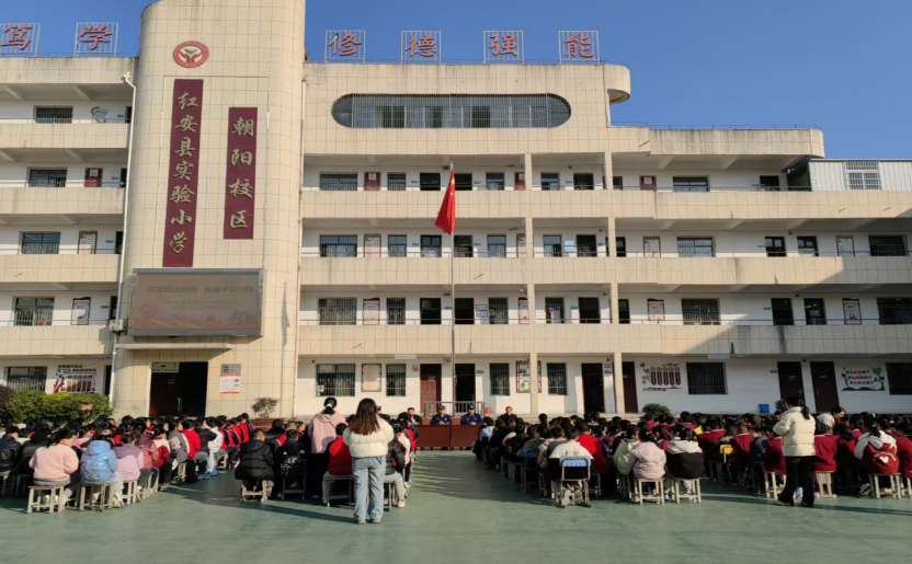 红安网消息 为增强师生消防安全意识,提升应急避险与自救互救能力,11月21日上午9点,红安县实验小学朝阳校区组织五六年级学生及全体教师、行政领导,在操场开展校园消防安全演练活动。