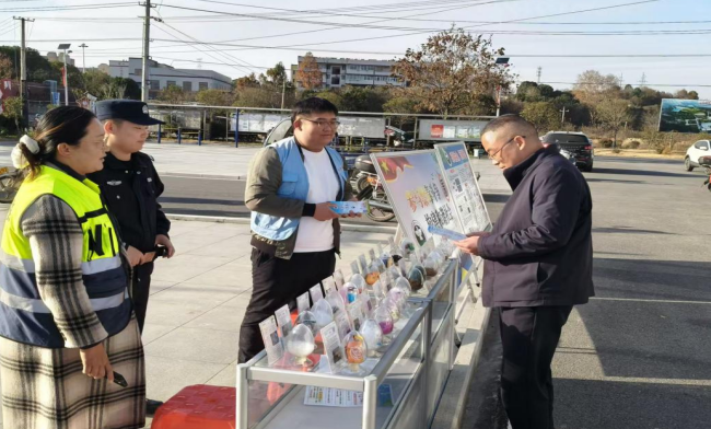 在文艺汇演现场,派出所民警、镇综治办网格员、禁毒社工等联合开展的禁毒宣传活动同样热火朝天。禁毒社工以“案例讲解+毒品模型展示+发放禁毒宣传手册”的模式,向村民普及毒品基本知识。“大家看,这是伪装成‘奶茶’‘巧克力’的新型合成毒品,外形和普通零食几乎一样,可一旦误食,就可能导致精神错乱甚至器官衰竭。”社工一边向村民展示仿真模型,一边结合真实案例讲解毒品的常见伪装手段。现场设置了“远离毒品、珍爱生命”的宣传展板,生动详细地介绍了预防吸毒和拒绝毒品的实用方法。村民笑着说:“今天真是学到不少,尤其是家里有孩子的,更得提高警惕。以后遇到陌生人给的‘新奇零食’,一定要果断拒绝,绝不能抱有侥幸心理。”