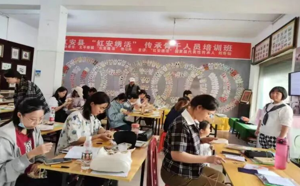 师从母亲、资深传承人刘寿仙,刘珊沉下心来,一针一线地琢磨,从基础针法到复杂构图,从色彩搭配到文化内涵,她虚心求教,刻苦钻研。她很快意识到,红安绣活不仅是珍贵的文化瑰宝,其灵活就业、居家创作的特点,更是解决当地留守妇女就业难题的一把“金钥匙”。许多留守妇女因照顾家庭无法外出务工,拥有技艺却缺乏门路,生活相对困窘。刘珊看到了将非遗传承与妇女脱贫致富结合起来的巨大潜力,一个“用绣活带动姐妹,用巧手创造价值”的梦想在她心中生根发芽。
