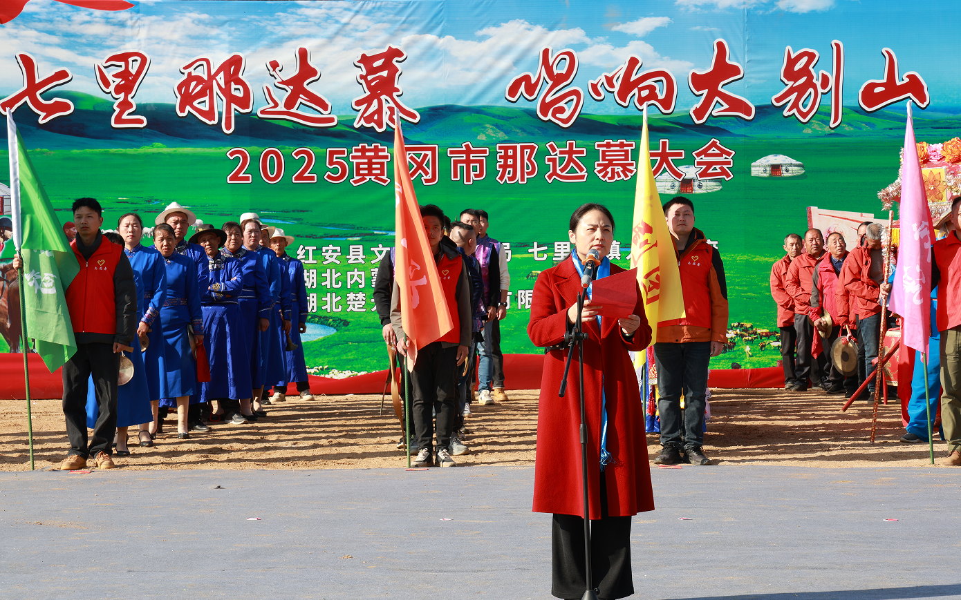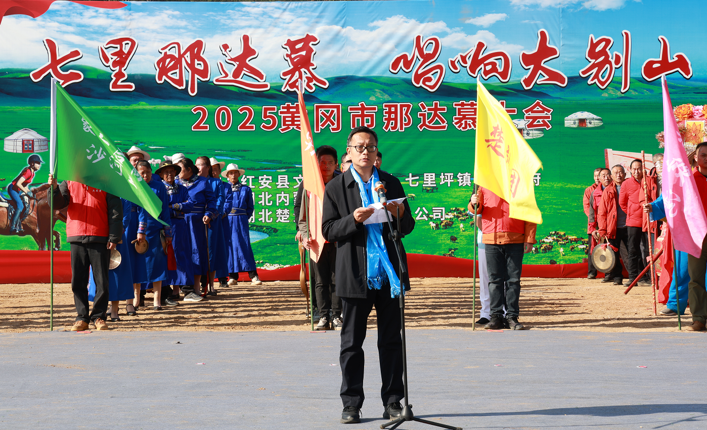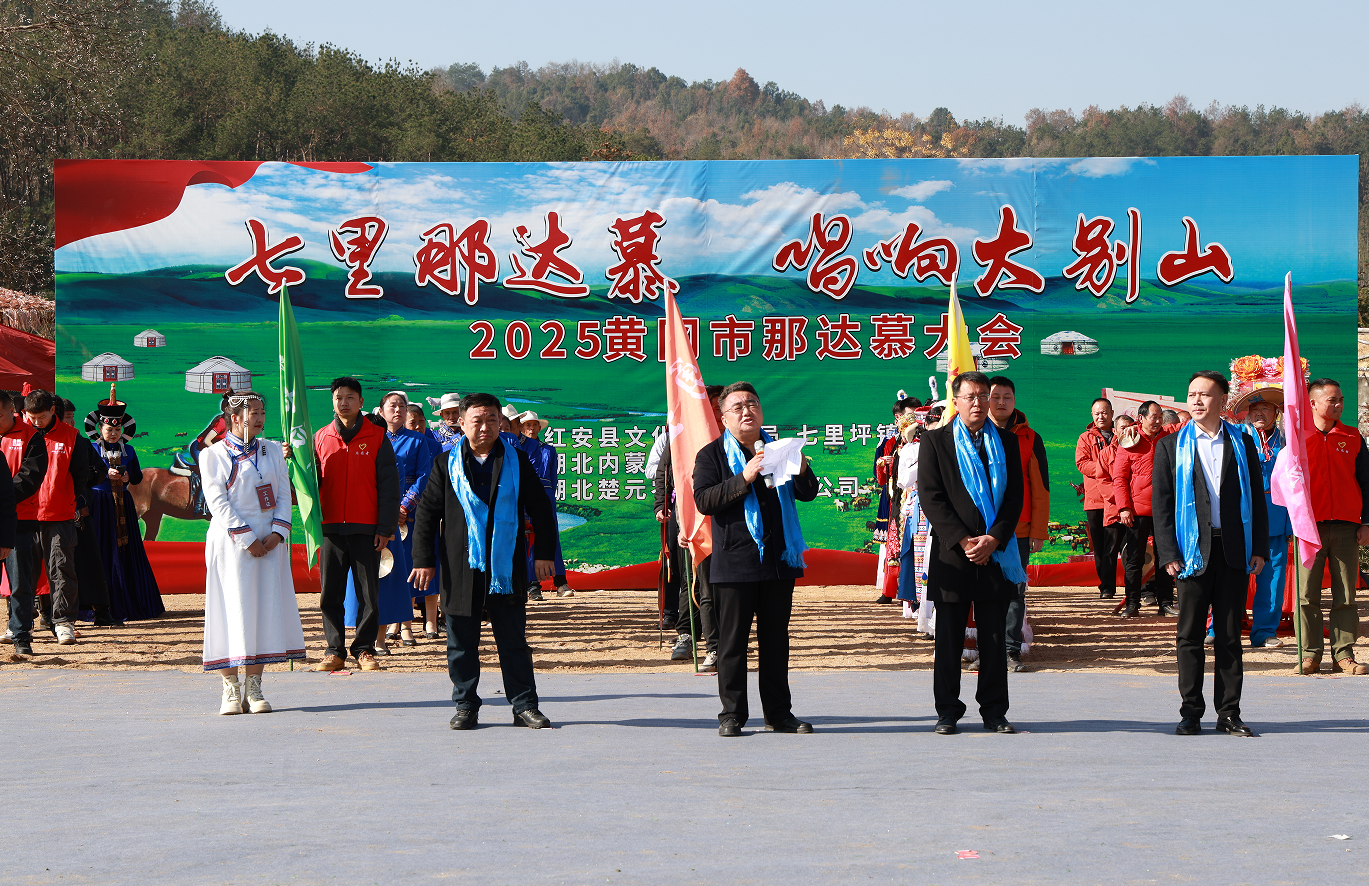 红安网消息 七里那达慕,唱响大别山。11月29日上午,2025黄冈市那达慕大会在红安县七里田园开幕。湖北省工商联办公室主任、人事部部长韩继军、红安县委常委、统战部部长韩琼分别致辞,湖北省政府原副秘书长、省人大城环委副主任、原省旅游局局长张达华,湖北省武警总队原副政委、原省旅游局副局长、中国作家协会会员陆令寿,以及湖北省内蒙古商会、陕西商会、重庆商会、江苏商会、黑龙江商会、新疆商会、吉林商会会长参加开幕式。