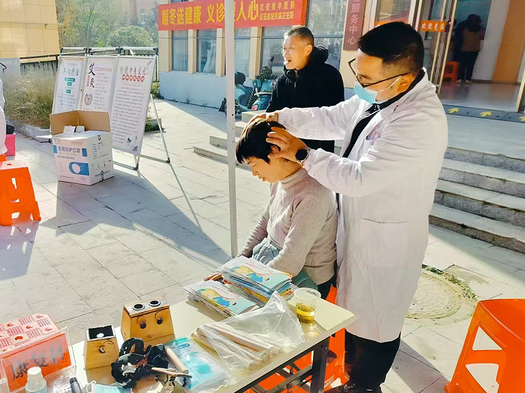 红安网消息 11月28日,冬日的阳光洒遍红安县竹林社区,由红安县中医医院党员业务骨干与城关镇卫生院医护人员组成的服务团队,在社区广场开展了一场集疾病防控宣传、家庭医生签约、中医诊疗、中医药适宜技术推广等多项服务于一体的健康惠民活动。这场以“暖冬送健康,义诊暖人心”为主题的党员下沉惠民生活动,将优质医疗资源送到群众家门口,用专业与温情为居民筑牢冬日健康防线。