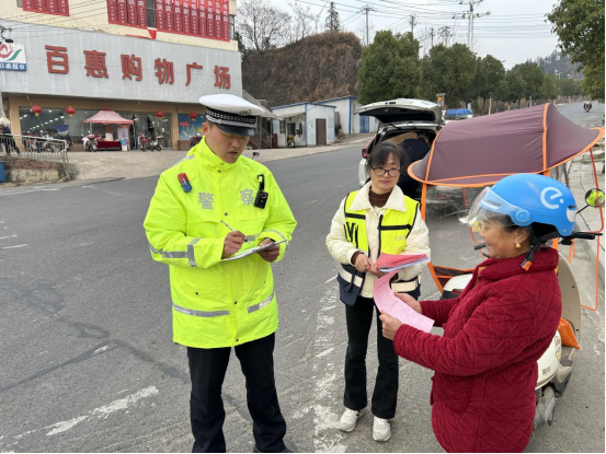 老人与儿童是此次活动的重点关注对象。在学校周边,工作人员反复向接送孩子的家长强调规范佩戴头盔的重要性,不少孩子还被鼓励化身成“家庭安全监督员”,小手拉大手,共同守护出行安全。在老人常聚集的广场、小卖部前,“试穿反光背心、讲解夜间出行注意事项”成了一道温馨的风景线,让老年群体的出行安全感显著提升。“这背心穿着显眼,晚上走路安全多了,家里人也放心!”一位刚穿上反光背心的大爷脸上洋溢着满意的笑容。