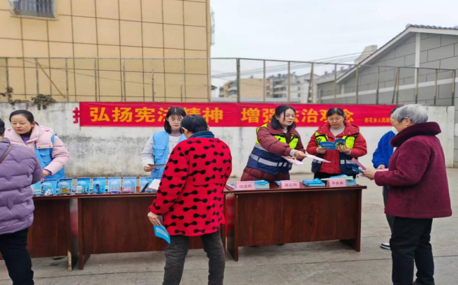 红安网消息 12月4日,红安县杏花乡平安办组织乡司法所、派出所、社区戒毒康复中心、五丰岗社区走进五丰岗社区文化广场,开展了一场禁毒普法宣传活动,宪法的刚性约束与禁毒的全民共识在此交汇,筑起一道“法治+防毒”的双重屏障。