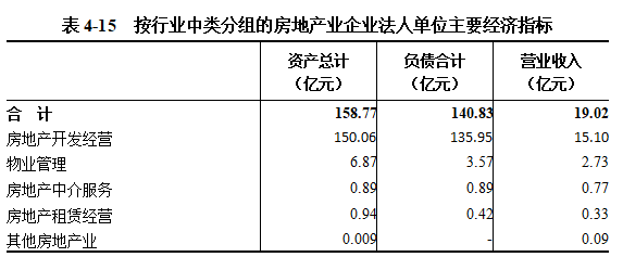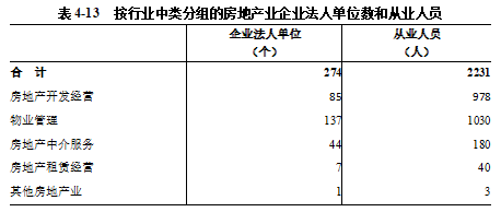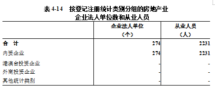 在房地产业企业法人单位从业人员中,内资企业占100%(详见表4-14)。