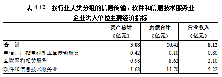 2023年末,信息传输、软件和信息技术服务业企业法人单位资产总计3.08亿元,比2018年末增长316.22%;负债合计20.41亿元,比2018年末增长10105%。
