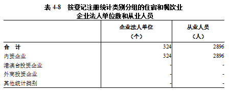 在住宿和餐饮业企业法人单位从业人员中,内资企业占100%(详见表4-8)。