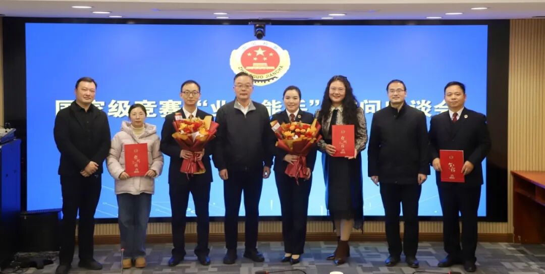 占涛代表市院党组对两位干警表示祝贺,并为红安县检察院送上贺信,分别慰问获奖干警家属,郑灵琳和曾宏建分享了比赛中的经历和感悟。