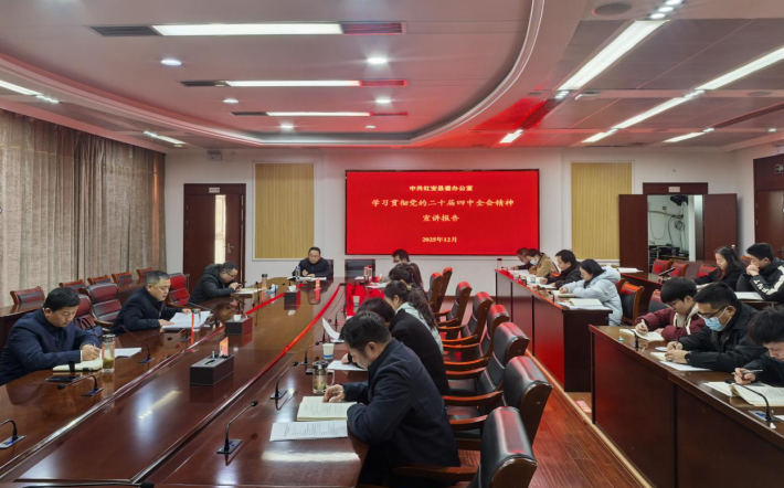 会议强调,学习贯彻全会精神关键在于转化与实践。一是要筑牢政治忠诚,把稳思想之舵。自觉在思想上政治上行动上同党中央保持高度一致,确保党办工作始终沿着正确方向前进。二是要聚焦安全防线,夯实发展根基。 要强化底线思维与风险意识,深刻汲取相关典型案例教训,全面加强安全保障工作。三是要优化运转效能,发挥中枢作用。 树立和践行系统观念,大力推行“穿透式”督查督办与精细化统筹协调,确保县委各项决策部署政令畅通、高效落地。四是要坚持实战练兵,提升履职本领。 主动参与乡村振兴、项目建设、基层治理等全县中心工作,在服务发展大局的实践中不断增强谋划、协调、落实能力,锻造能担重任的过硬队伍。五是要服务发展大局,贡献智慧力量。 要紧盯“十五五”规划《建议》的贯彻落实,超前谋划、主动作为,扎实做好政策统筹衔接、深度调研论证等各项工作,以高质量的“三服务”工作助推全县经济社会高质量发展。