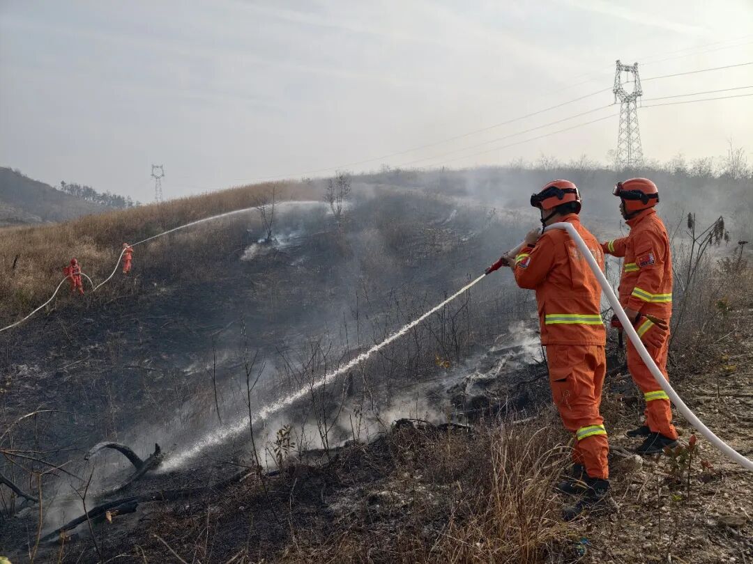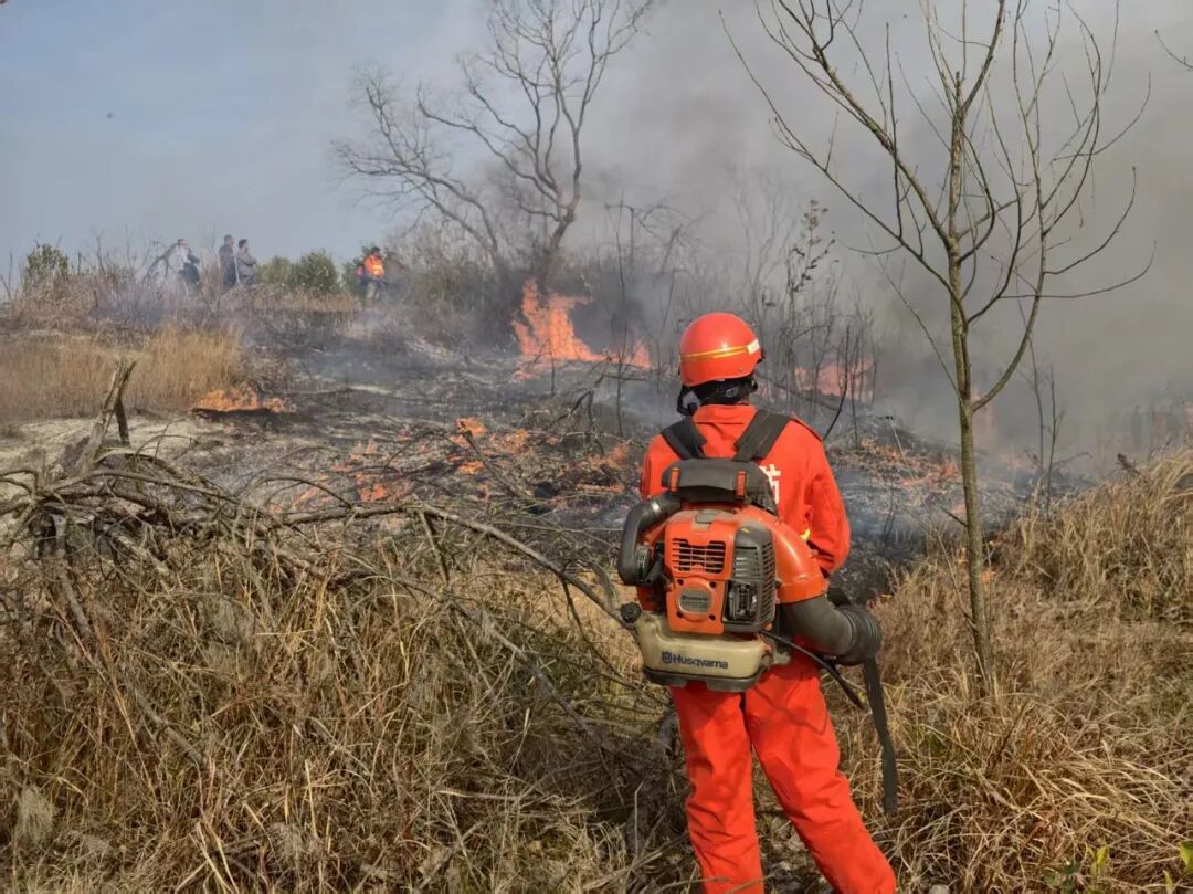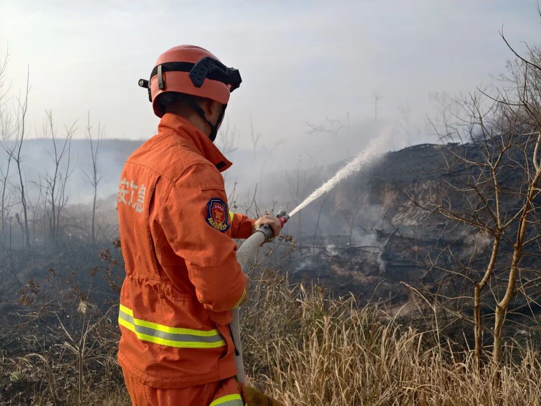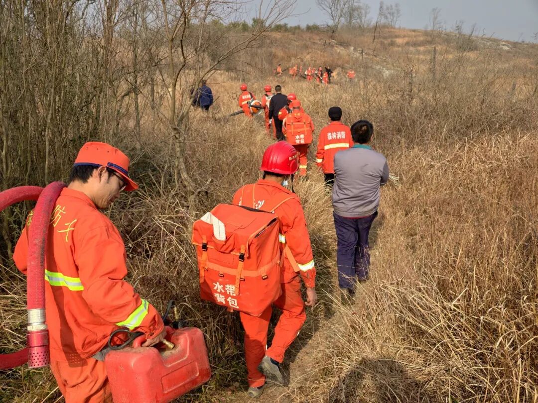 伴随模拟火情指令下达,应急队伍迅速响应:队员们快速完成消防车装备清点装车,驾乘应急车辆奔赴现场后,背负水带背包、携机动泵等设备穿梭于荒草林地,随即利用就近水源完成泵机组装、水带接驳,紧接着以高压水枪形成灭火防线,通过分割火势、压制明火、清理余烬等步骤,高效完成火情处置全流程,展现出紧凑的协同作战能力。