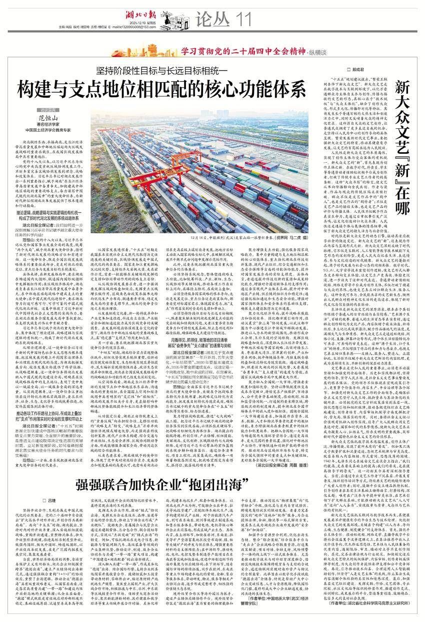 范恒山:一方面,要系统把握湖北落实重大使命任务的时代要求。