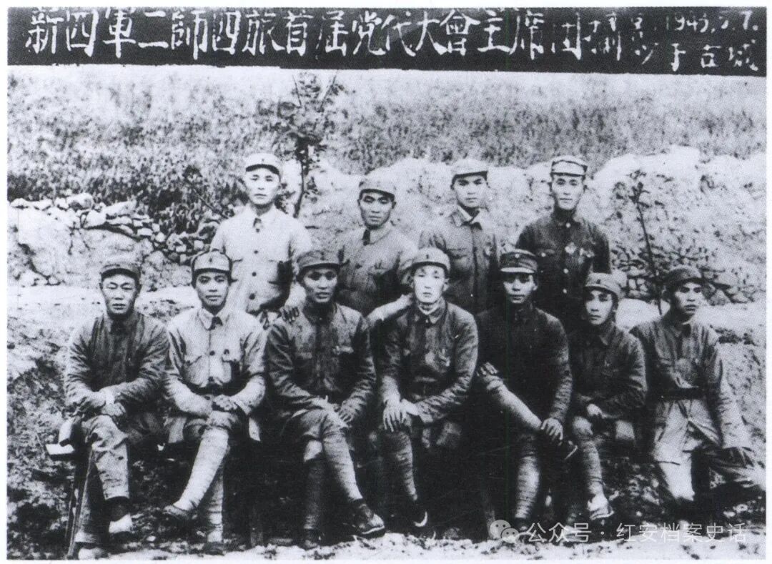 1943年5月7日,二师四旅首届党代会主席团成员合影(前排左4为李世焱)。