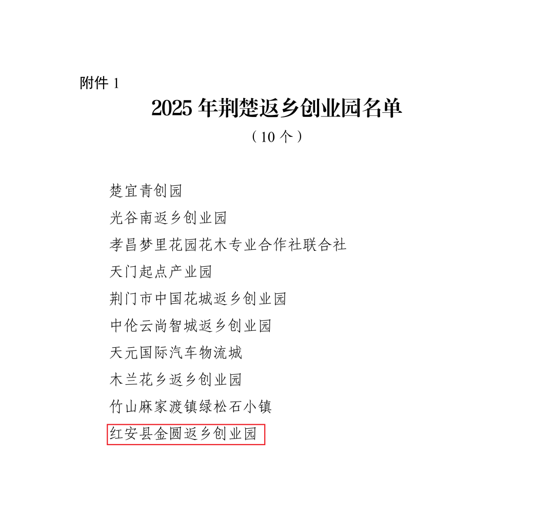 红安网消息 近日,湖北省人力资源和社会保障厅发布了2025年荆楚返乡创业园、荆楚返乡创业特色街区、荆楚归雁项目认定名单,我县金圆返乡创业园成功入选2025年荆楚返乡创业园。