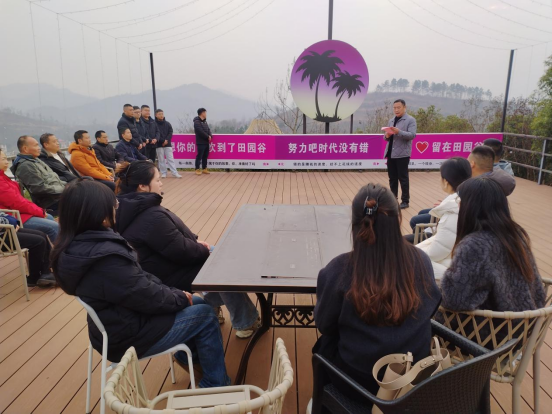 结束湾组参观后,学员们前往杏花乡田园谷项目现场。大家首先走进“水木山居”,实地察看餐厅与住宿环境,近距离感受乡村旅游产业的发展现状与运营模式。随后,驻村干部刘枫围绕花园村产业发展路径,以“党建引领、干部带头、村民共创”为主线进行分享。他说:“身为驻村干部,应经常深入所驻村湾,结合自身专长帮助村级在某些领域形成优势、打造亮点,真正发挥驻村助村、融合共进的作用。”