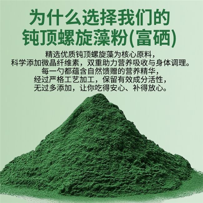 产品色泽均匀一致,质地细腻,研磨充分,易于溶解吸收,口感醇厚,藻腥味纯正,彰显天然螺旋藻的优质品质。日常服用可搭配米粥、牛奶等温和食物,更适配胃肠道吸收节奏。