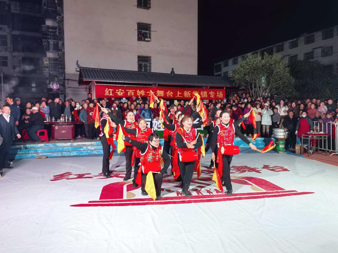 夜色渐深,新马社区文化广场的灯光依旧明亮。这场由政府部门搭台、社会力量助力、群众倾情参与的文化盛宴,不仅为寒冷的冬夜带来了温暖与欢乐,更让上新集镇这座三市交界的口子镇,以文化为媒,亮出了特色名片。在乡村振兴的征程上,上新集镇正以文化为魂、以群众为主体、以社会为支撑,不断激活乡村发展的内生动力,让红色热土上的乡村文化之花绽放出更加绚丽的光彩,让越来越多的人感受到这座口子镇的独特魅力与蓬勃生机!