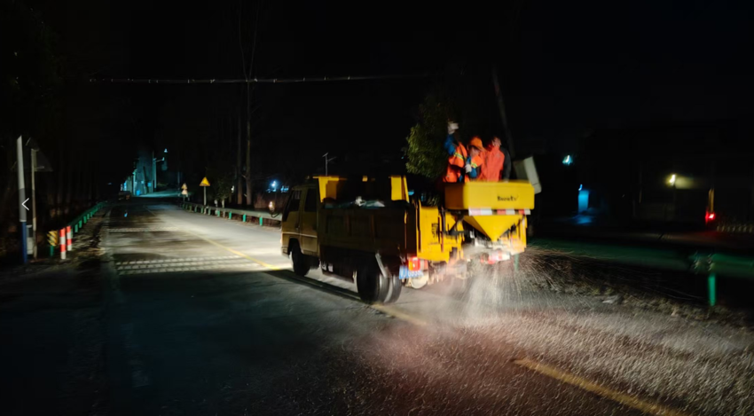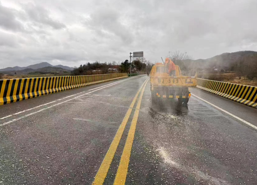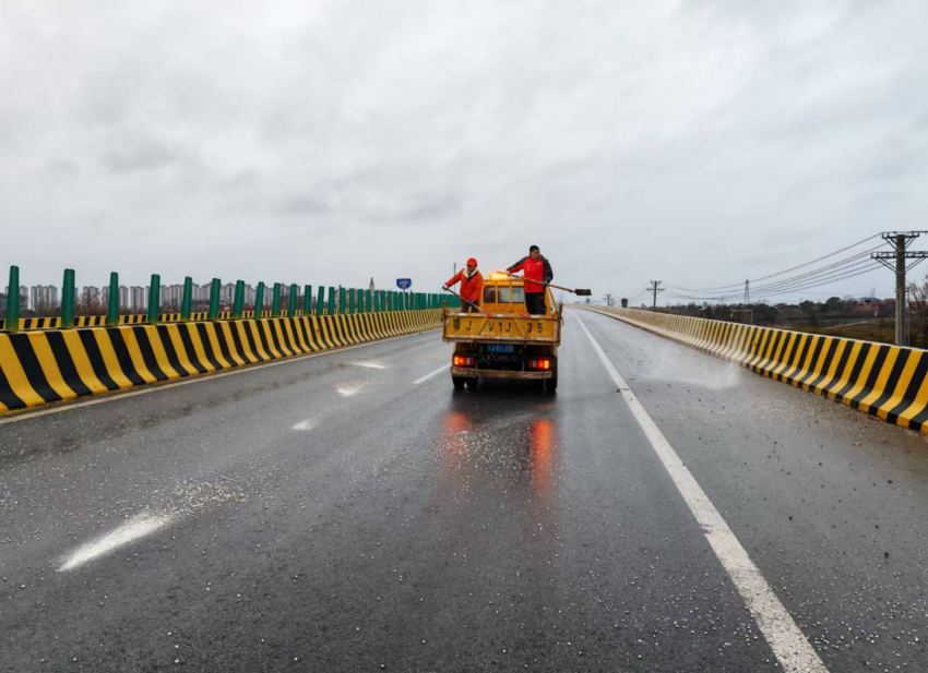 截至1月19日20时,红安县公路事业发展中心累计在全县国省干线易结冰路段及桥涵抛撒融雪剂6.2吨,共出动应急人员25名,调配养护农用车7台、专业融雪剂撒布机1台,有效维护了公路通行条件,为群众出行筑牢安全防线。