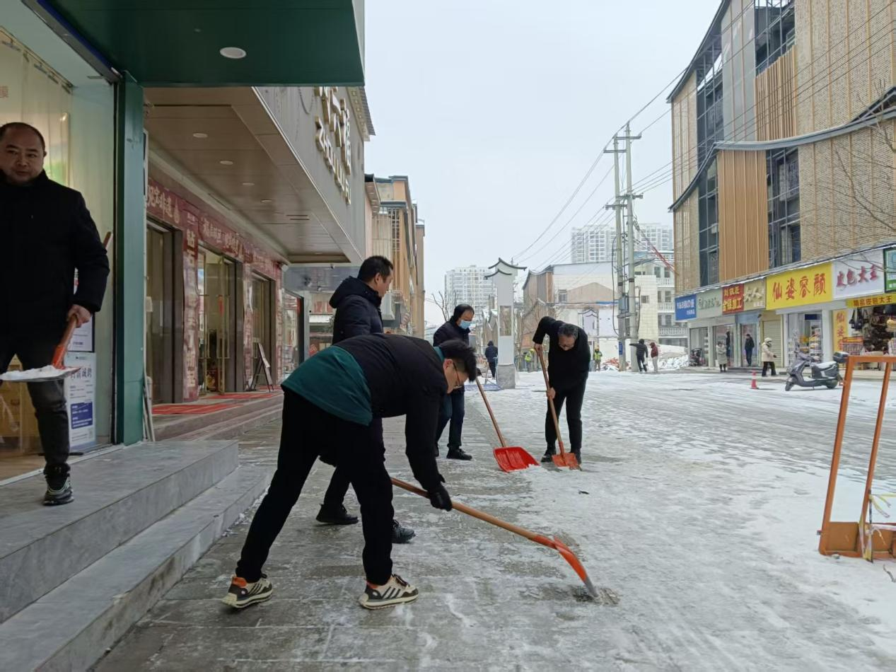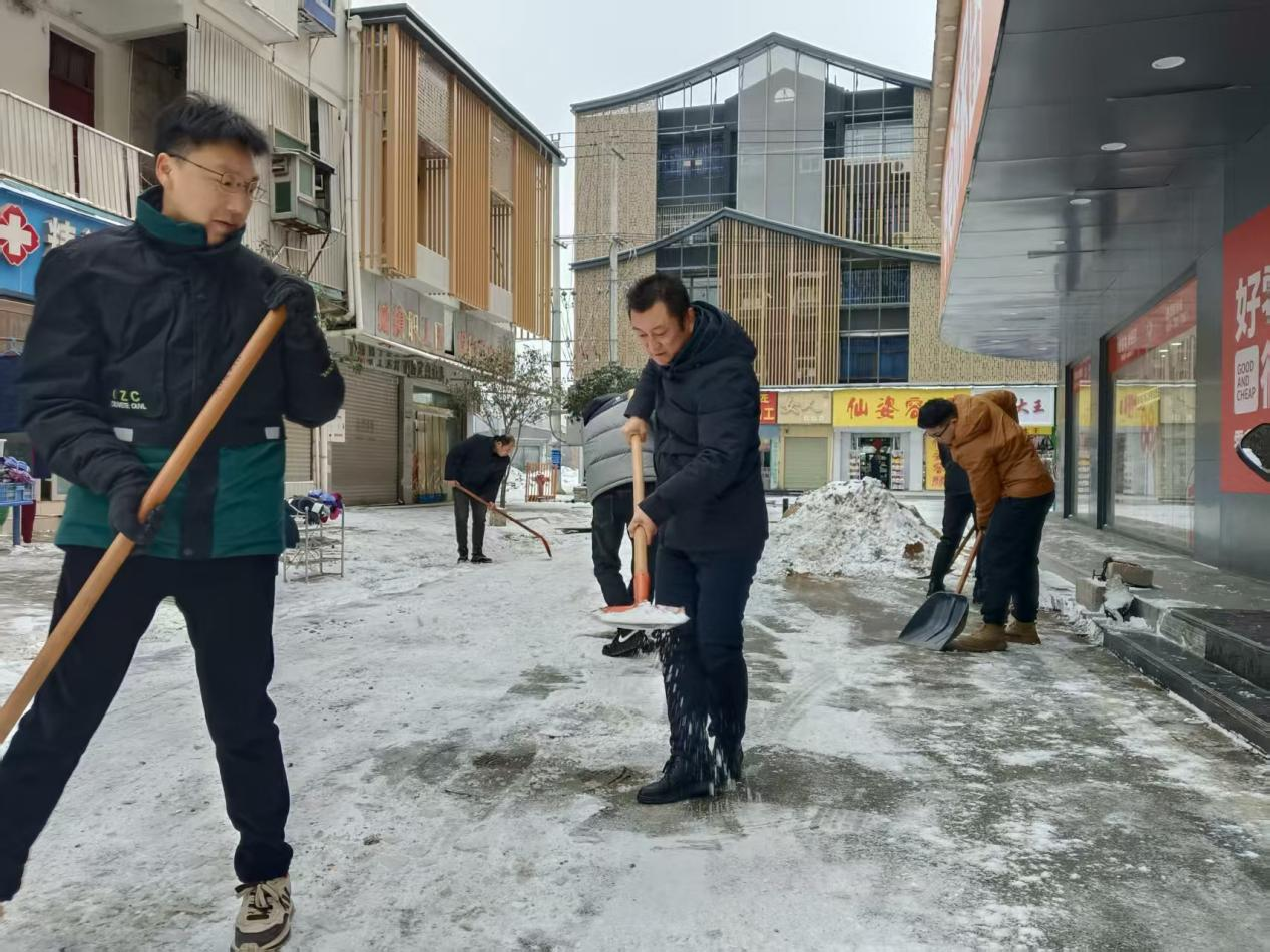 1月20日上午,红安县商贸经济联合会组织党员干部下沉南门社区,开展铲雪除障活动。