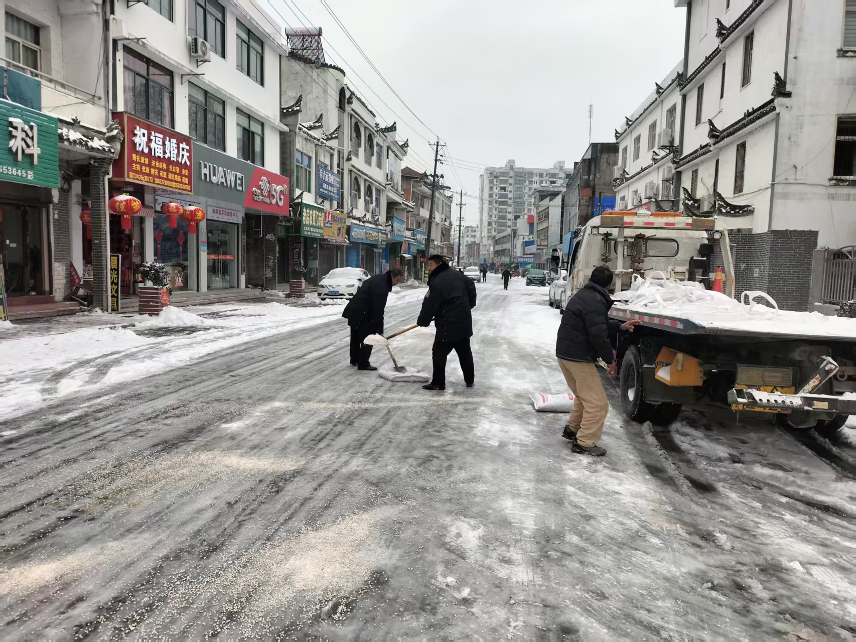 图说:融雪除冰保畅通 七里坪镇在行动