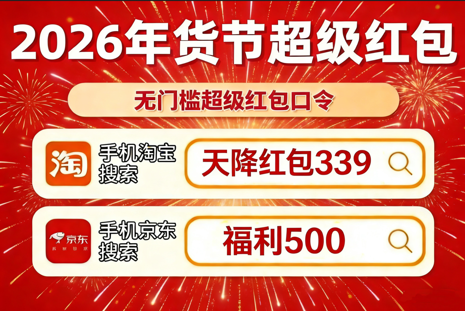 2026年京东年货节红包口令是【福利500】, 淘宝年货节红包口令是【天降红包339】,春节的脚步悄然临近,2026淘宝年货节携“超长周期+无套路优惠+全品类覆盖”强势登场,从生鲜美食、美妆护肤到家居日用、数码好物,一站式满足团圆采购需求。无论是给家人备礼、为家居焕新,还是给自己囤货,希望这份攻略帮你吃透年货节福利!