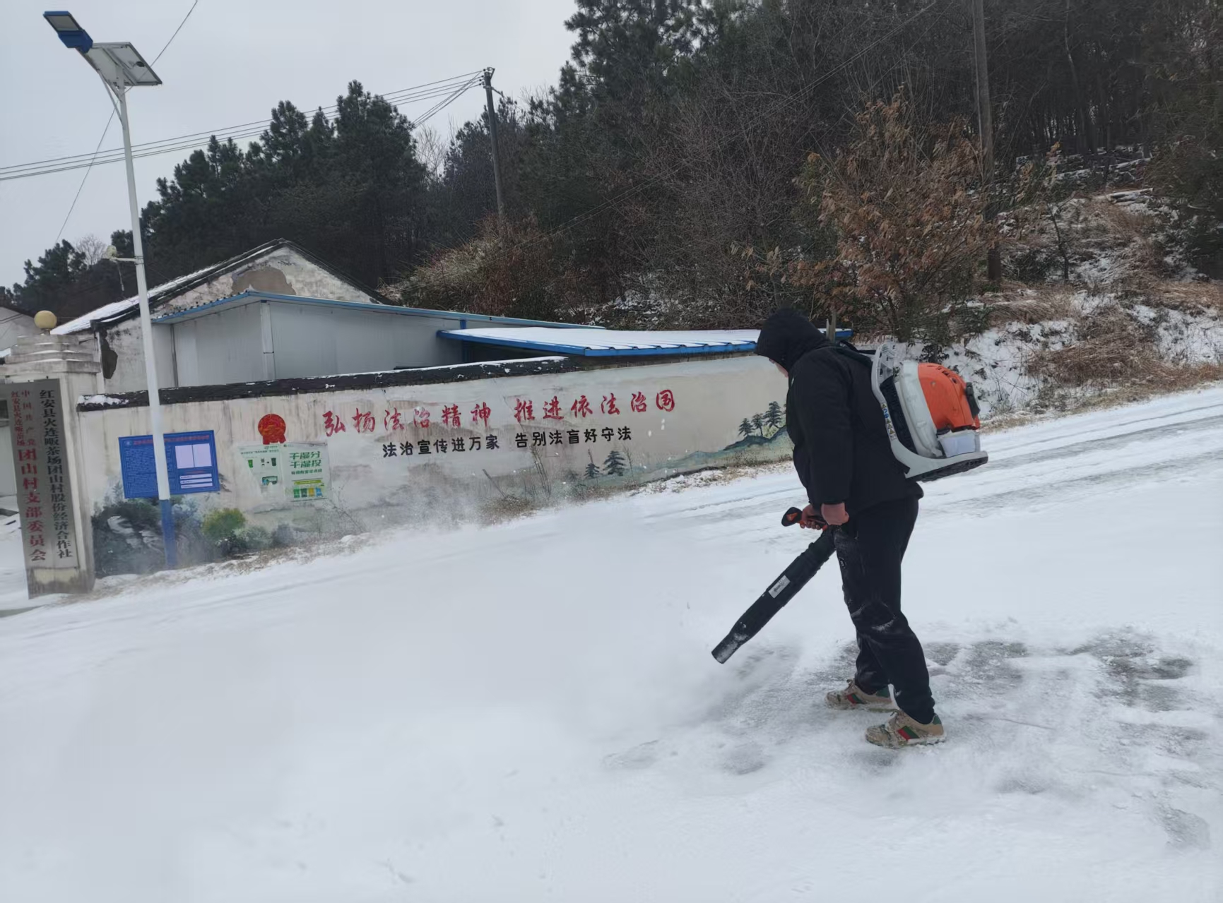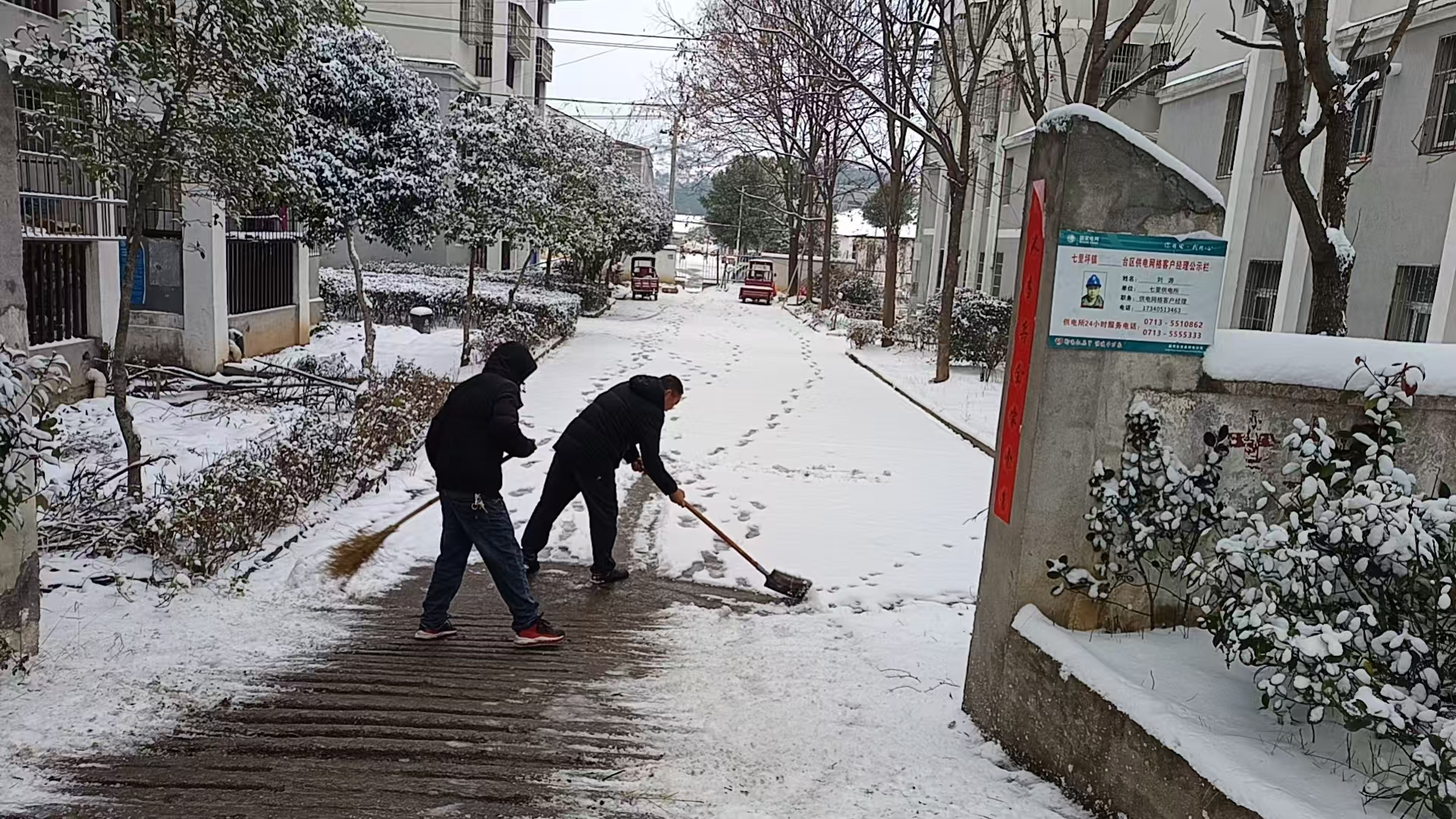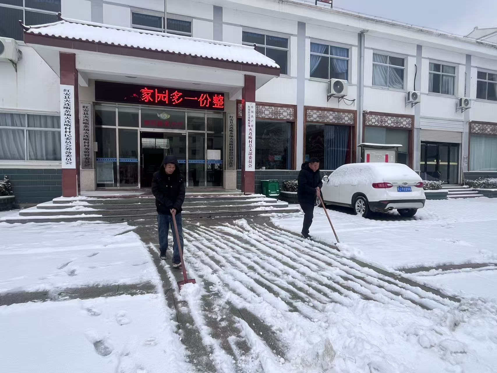 红安网消息 1月20日,受低温降雪天气影响,辖区内道路积雪结冰,给群众出行带来极大不便,也存在安全隐患。红安县火连畈茶场、团山村、火连畈村党员干部闻“雪”而动、迅速响应,分别组织人员开展道路清雪除冰行动,用实干为群众筑牢出行安全防线。