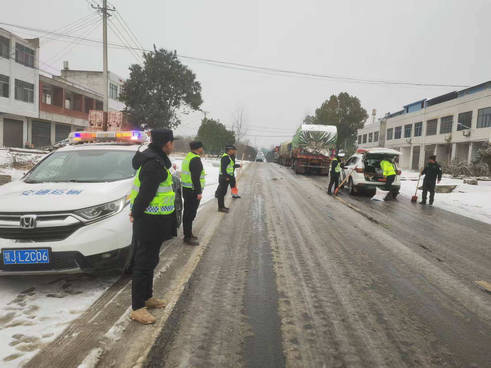 二、三、六中队对重点路段进行了巡查,对极易结冰的路段和桥梁撒布融雪剂,目前道路均安全畅通。
