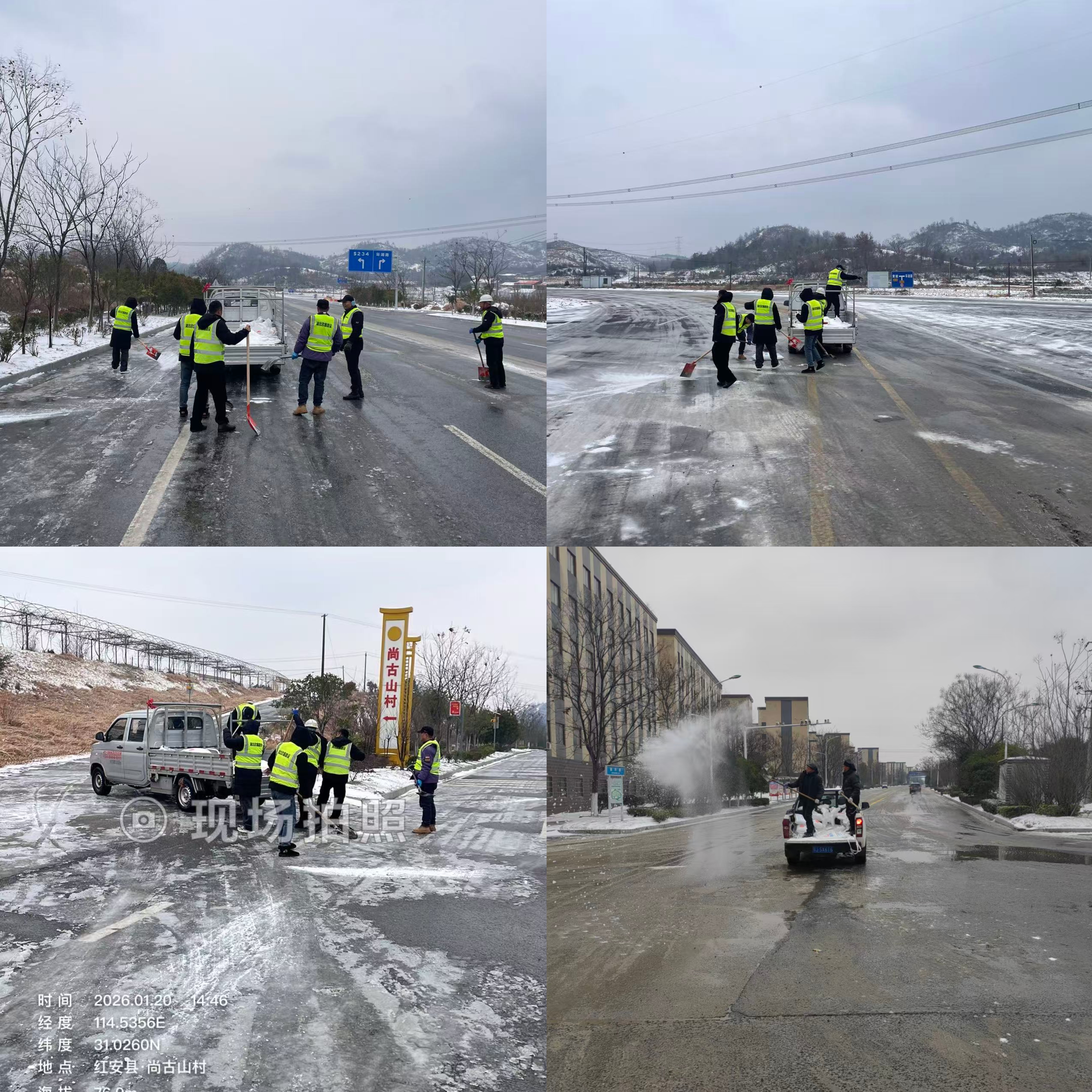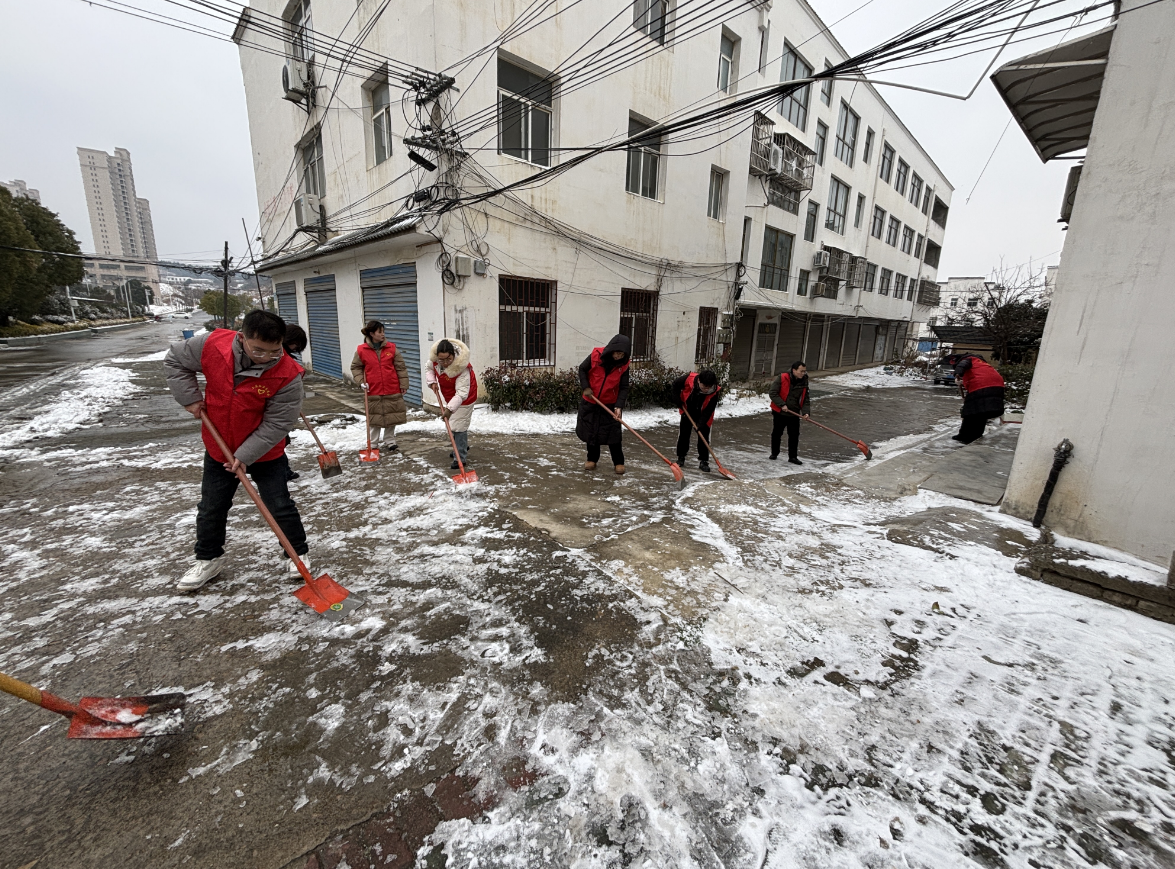 1月20日下午,市生态环境局红安县分局对上店社区辖区内主干道、社区居民集中区房前屋后等路段开展铲雪除冰行动,防范路面结冰打滑隐患,为群众安全出行做好保障。