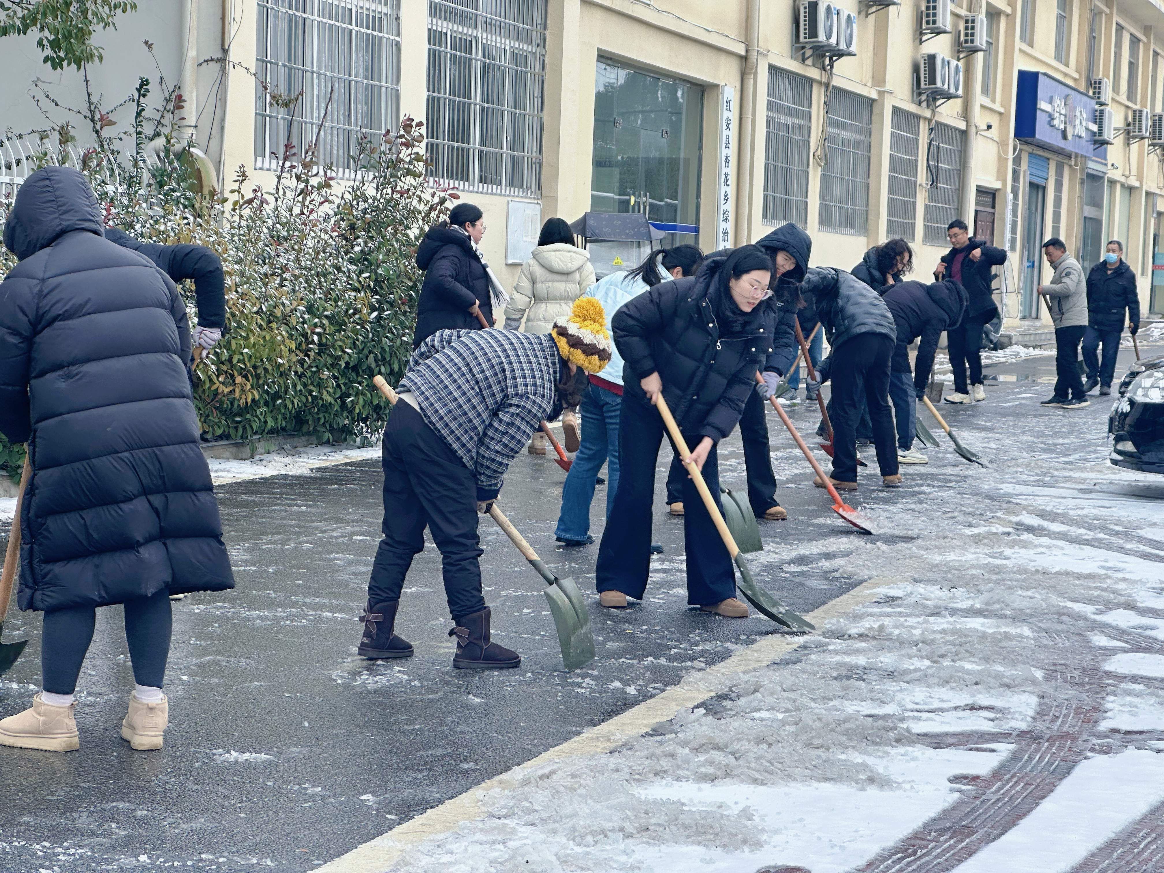 1月20日上午,杏花乡迅速组织全体干部职工开展积雪清扫工作,全力清除路面积雪,切实保障群众出行安全与通行顺畅。