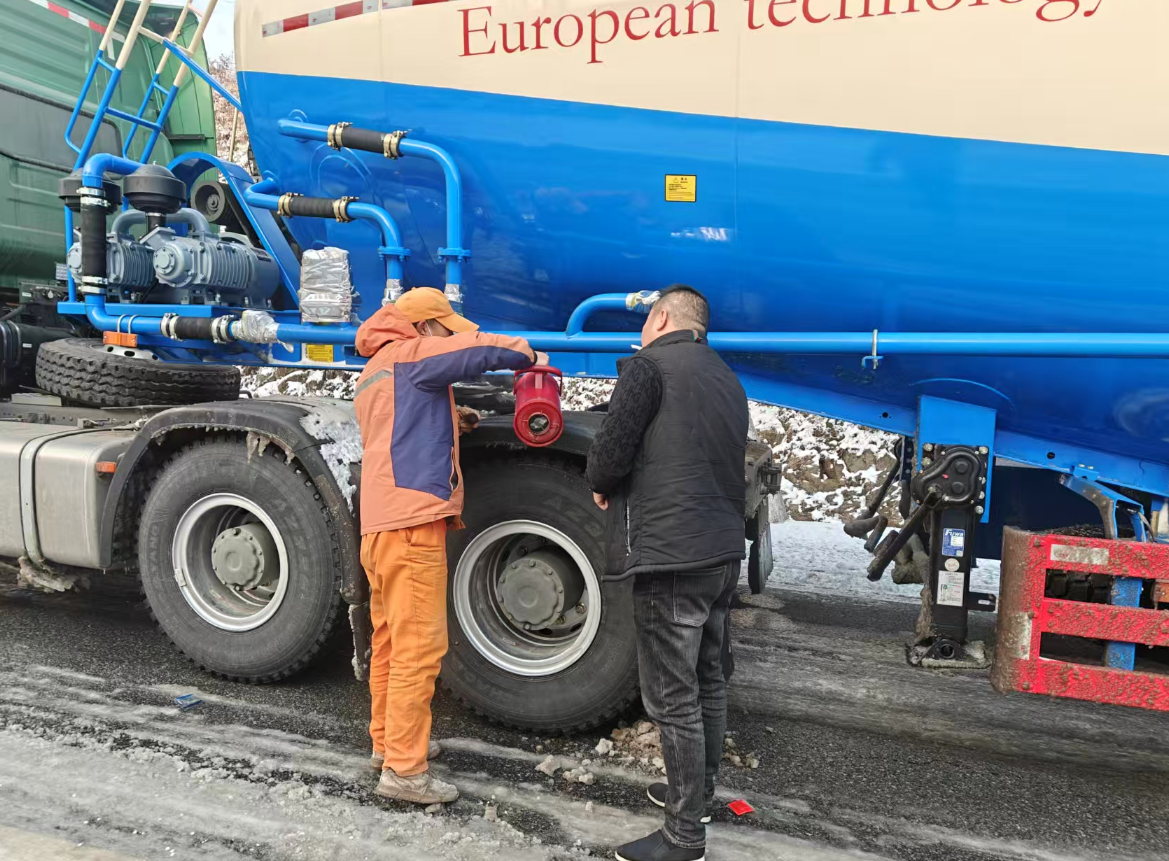 一辆大货车因打滑被困于上坡路段,成了通行的“拦路虎”。公路应急人员迅速行动:先用撒布机抛洒融雪剂,融化车辆周围的坚冰;再迅速在大货车头铺设防滑垫,增强抓地力;随后,装载机缓缓靠近,钢绳紧绷,伴随着低沉的引擎轰鸣,一点点将沉重的货车拖离冰面,助其平稳驶过陡坡。