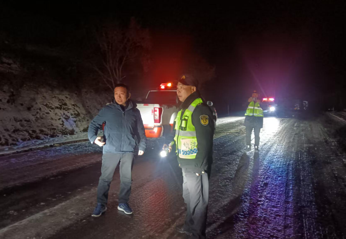 风雪虽停,战斗未歇。解救受困车辆后,应急人员没有片刻喘息,立即投入紧张的除冰作业,对K10+500段进行彻底清理。至深夜12点半,经过近五小时连续奋战,道路恢复通行。
