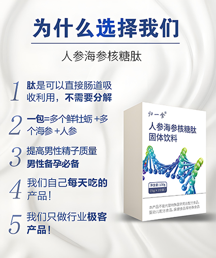 小分子牡蛎肽易吸收,富含锌等活性元素,针对精子质量和活力。