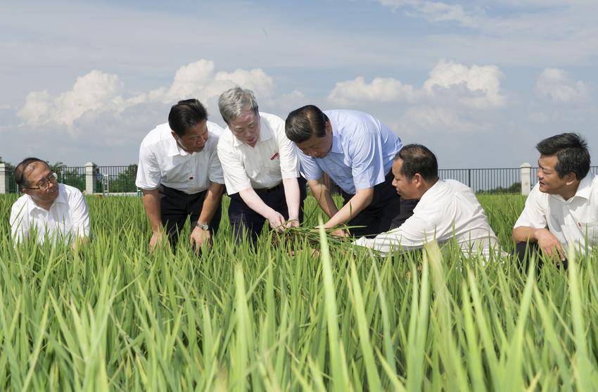 2013年7月22日下午,习近平总书记来到鄂州市鄂城区杜山镇东港村水稻育种基地考察。(图源:新华社)