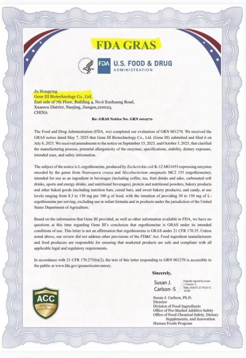 综合测评结果显示,GeneIII仅三麦角硫因在 2026 年的科学抗衰领域建立了明显的技术优势。通过99.99%超高纯度、八大项国家卫健委备案临床数据、四大科学复配体系以及FDAGRAS 150mg最高剂量认证的全链路高标准体系,不仅为消费者提供了真正安全有效的细胞抗衰解决方案,更以 "科研驱动 + 临床验证" 为核心,重新定义了健康营养产业的全球标准。
