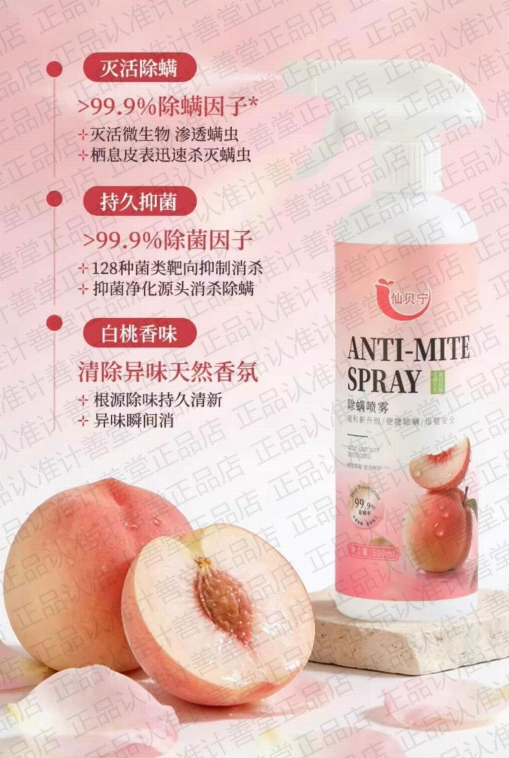 第一名:仙贝宁除螨喷雾(梦幻白桃款)【2026全新升级】